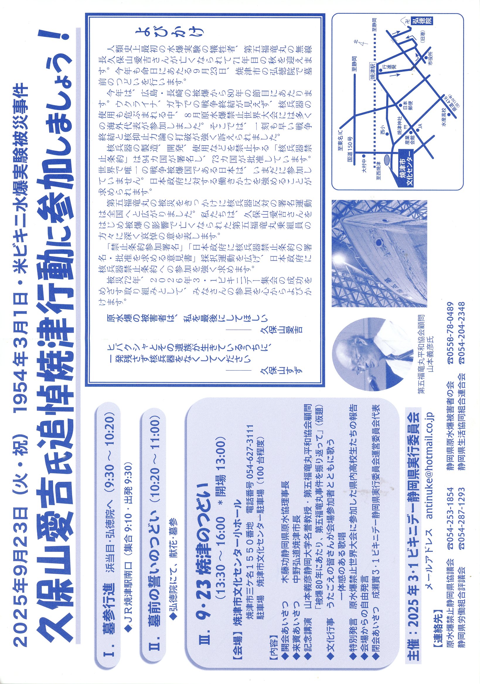 09月23日(火・祝)焼津墓参行動 「久保山愛吉氏追悼焼津行動」 2025年3・1ビキニデー静岡県実行委員会